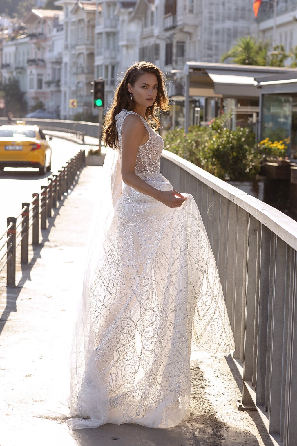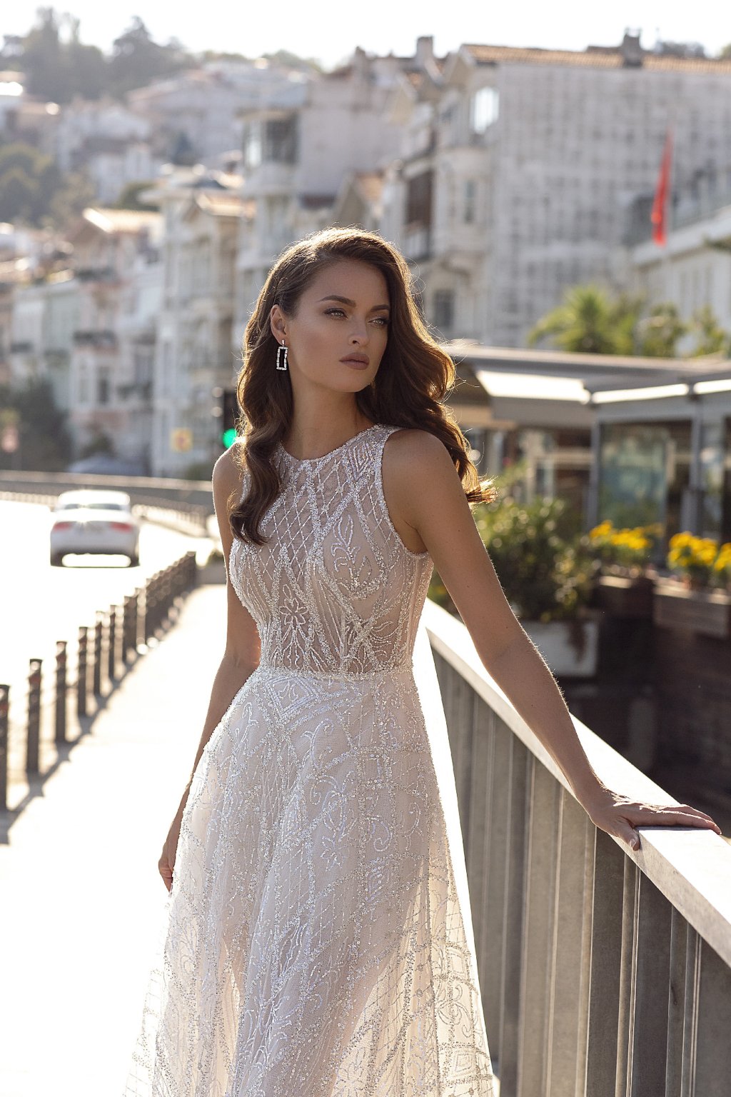 Žiarivé a trblietavé šaty s prepracovanou výšivkou, ktorá vynikne pri každom pohybe. Jemne transparentný zvršok so zahaleným dekoltom, ktorý zaistí akýkoľvek pohyb komfortným. Krásnu siluetu so štíhlym pásom ešte viac zvýrazní rozšírená padavá sukňa. V týchto šatách určite zažiarite.