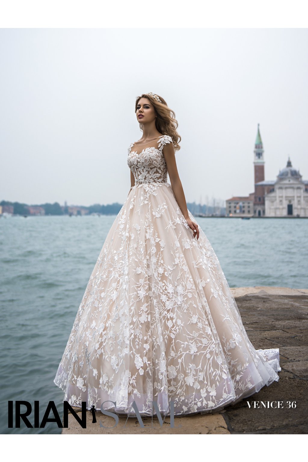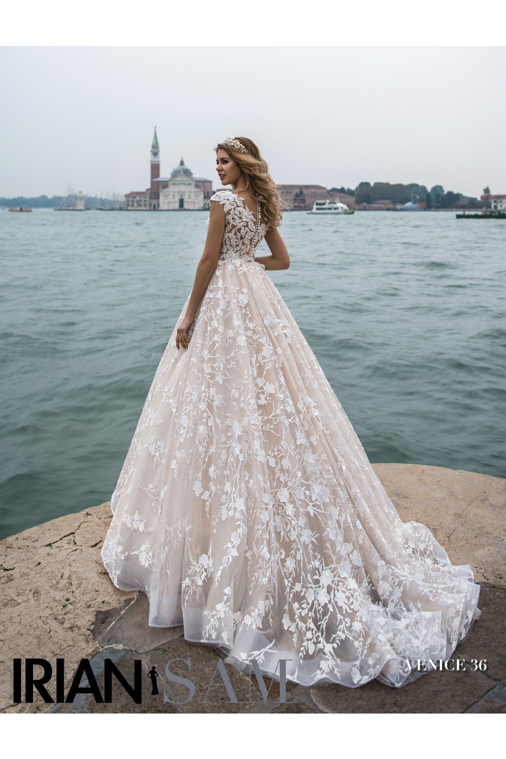 Romantické svadobné šaty s nadýchanou sukňou so záplavou kvetinovej výšivky. Svadobné šaty klasického strihu s korzetovým zvrškom a jemnými rukávmi. Šaty Vám vyčarujú štíhly pás. Chrbát je ozdobený kvetinovým tylom, ktorý ľahko schová viazanie šiat a vy si tak bezstarostne užijete svoj svadobný deň.